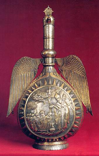 Սուրբ Հոգու խարհրդանիշը, մեռոնի սպասքի հարդարանքի գլխավոր պատկերն է: