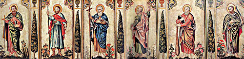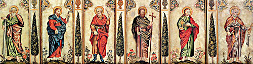 12 առաքյալներն են Պետրոսը և Անդրեասը, Հակոբոսը և Հովհաննեսը, Փիլիպպոսը և Բարդուղիմեոսը, Թովմասը և Մատթեոսը, Հակոբոս Ալփյանը և Թադեոսը, Սիմոն Կանանացին և Հուդա Իսկարիովտացին, որը և մատնեց Տիրոջը. նրա փոխարեն հետագայում ընտրվեց Մատաթիան: